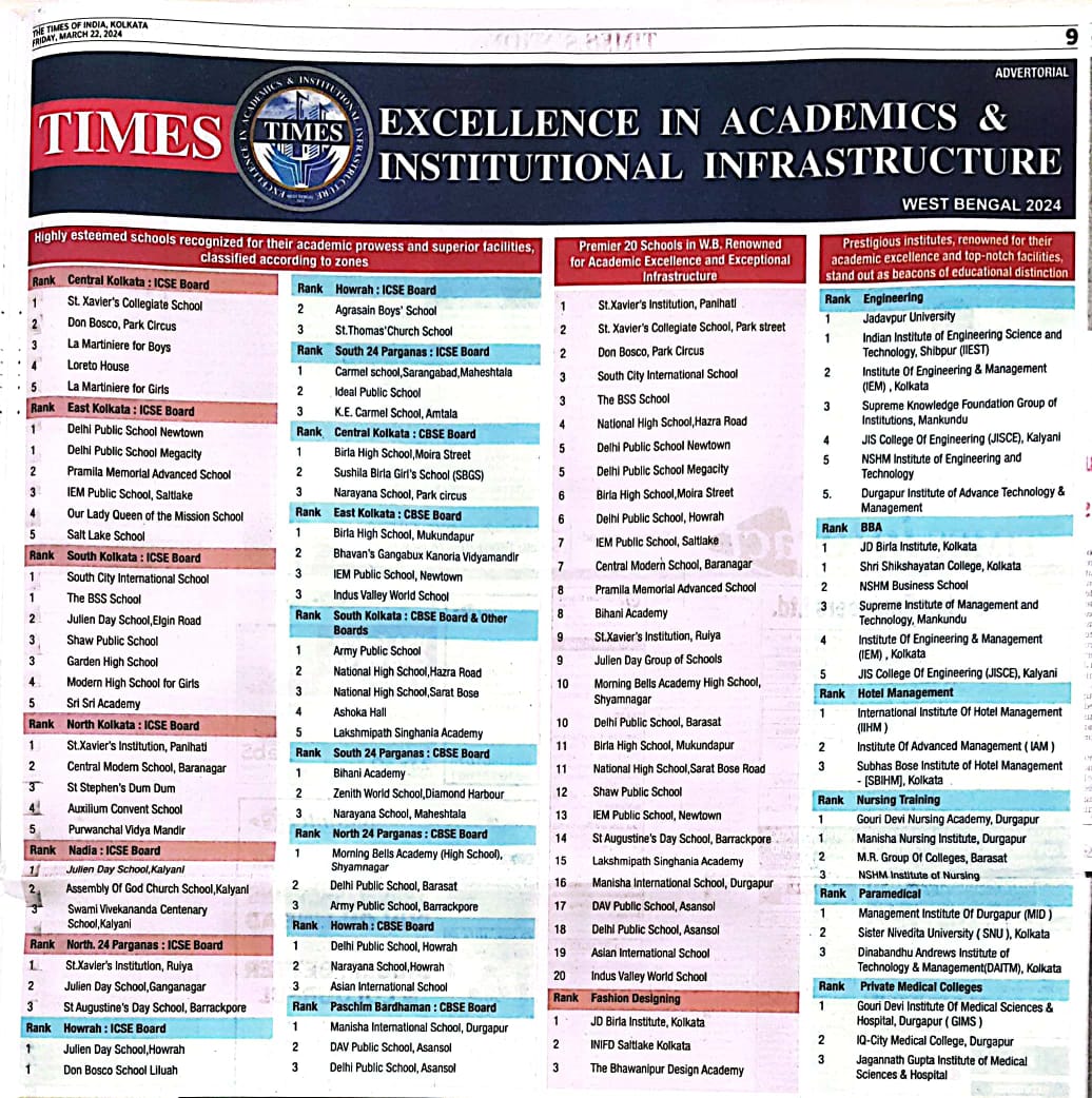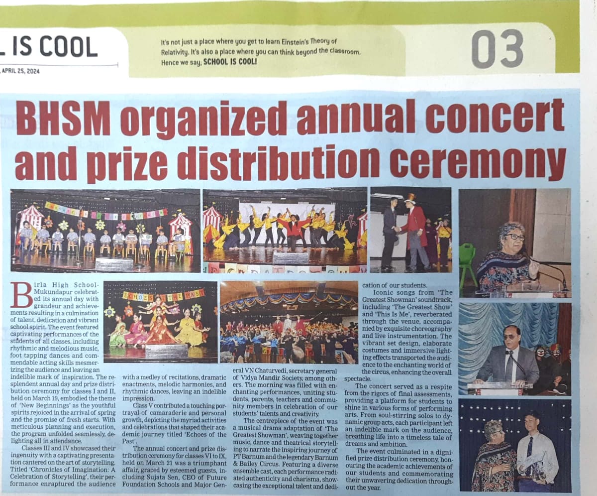 Read MoreBirla High School - Mukundapur, secured the First position as the best CBSE School in Eastern Kolkata