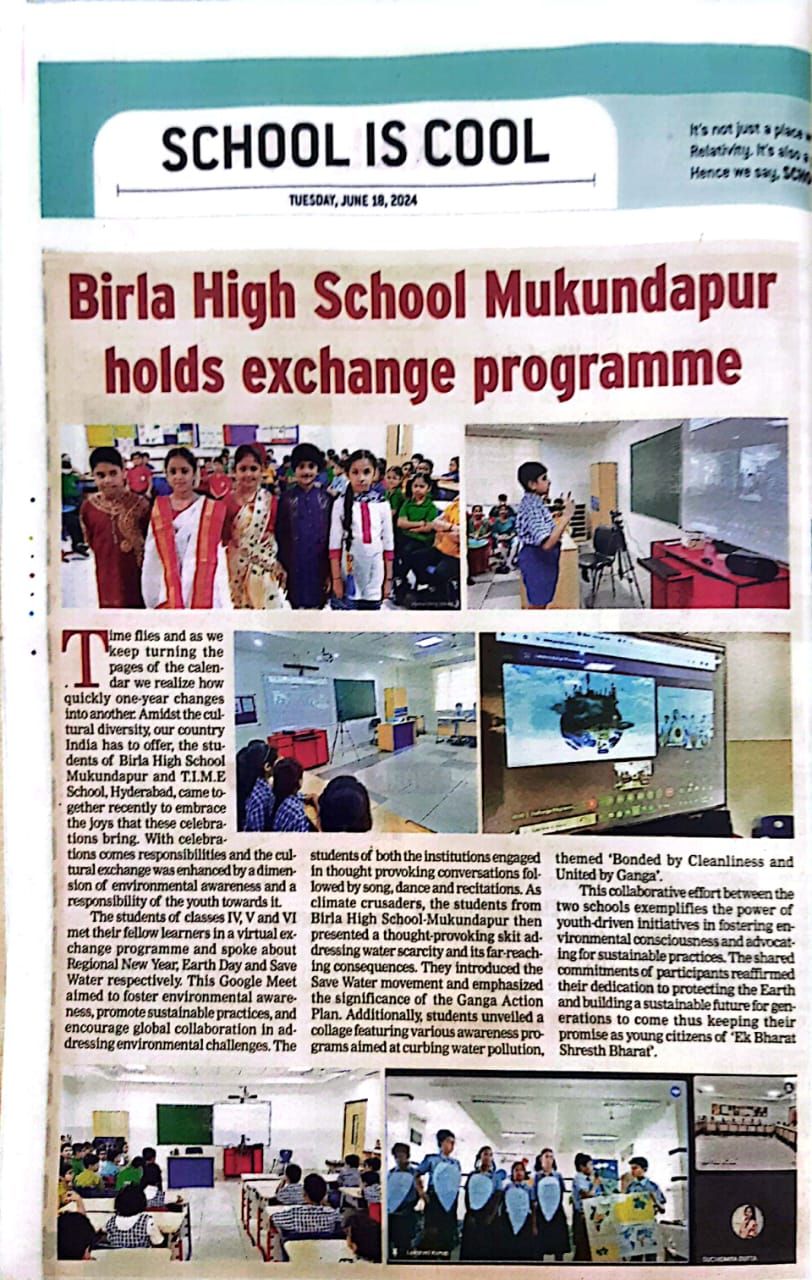 Read MoreBirla High School - Mukundapur organised Exchange program with T.I.M.E School Hyderabad