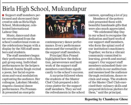 Birla High School - Mukuindapur celebrated International Labour Day to show gratitude to the support staff member of the school.