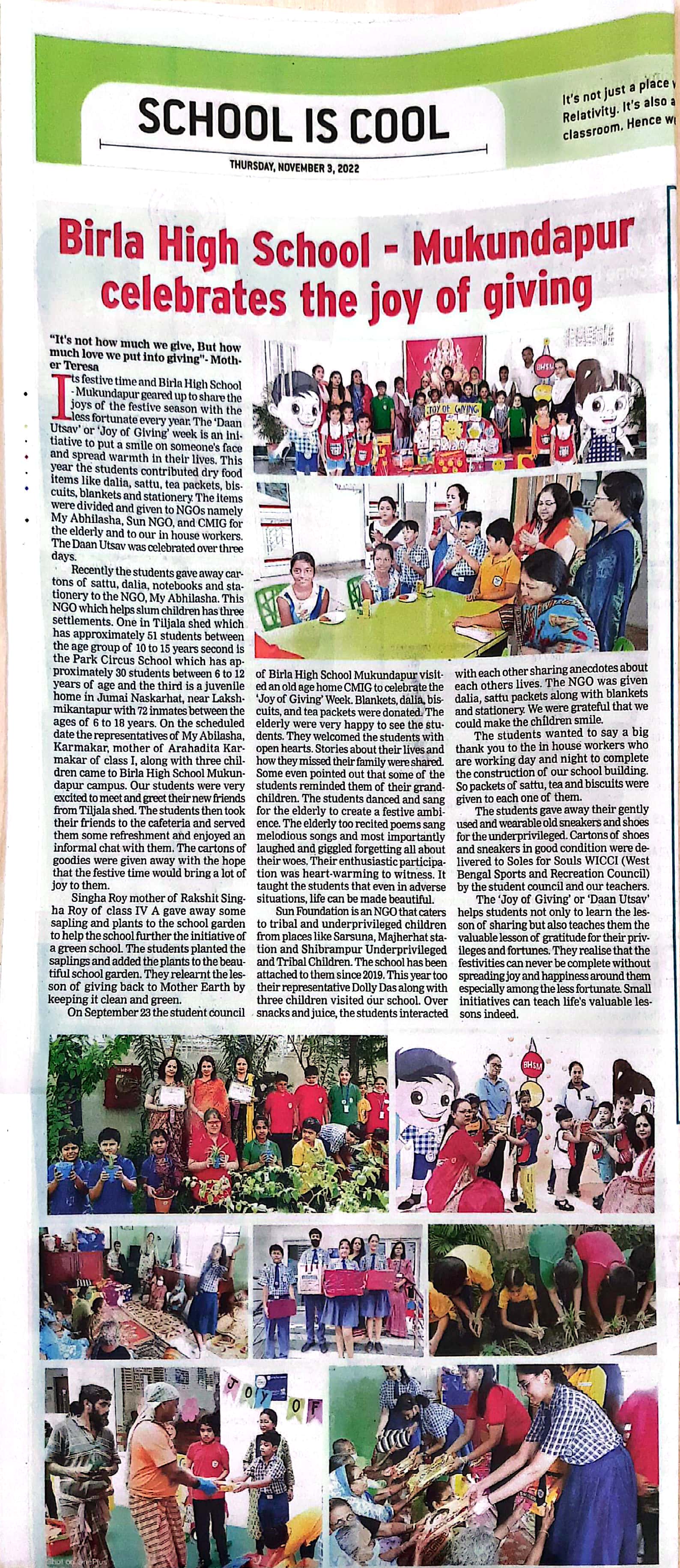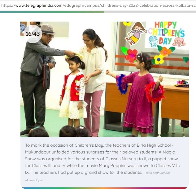 Birla High School - Mukundapur celebrated Children's Day. Click on the below link https://www.telegraphindia.com/edugraph/campus/childrens-day-2022-celebration-across-kolkata-schools-photogallery/cid/1898255