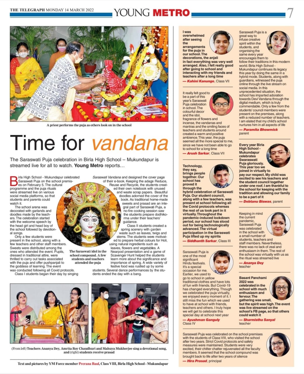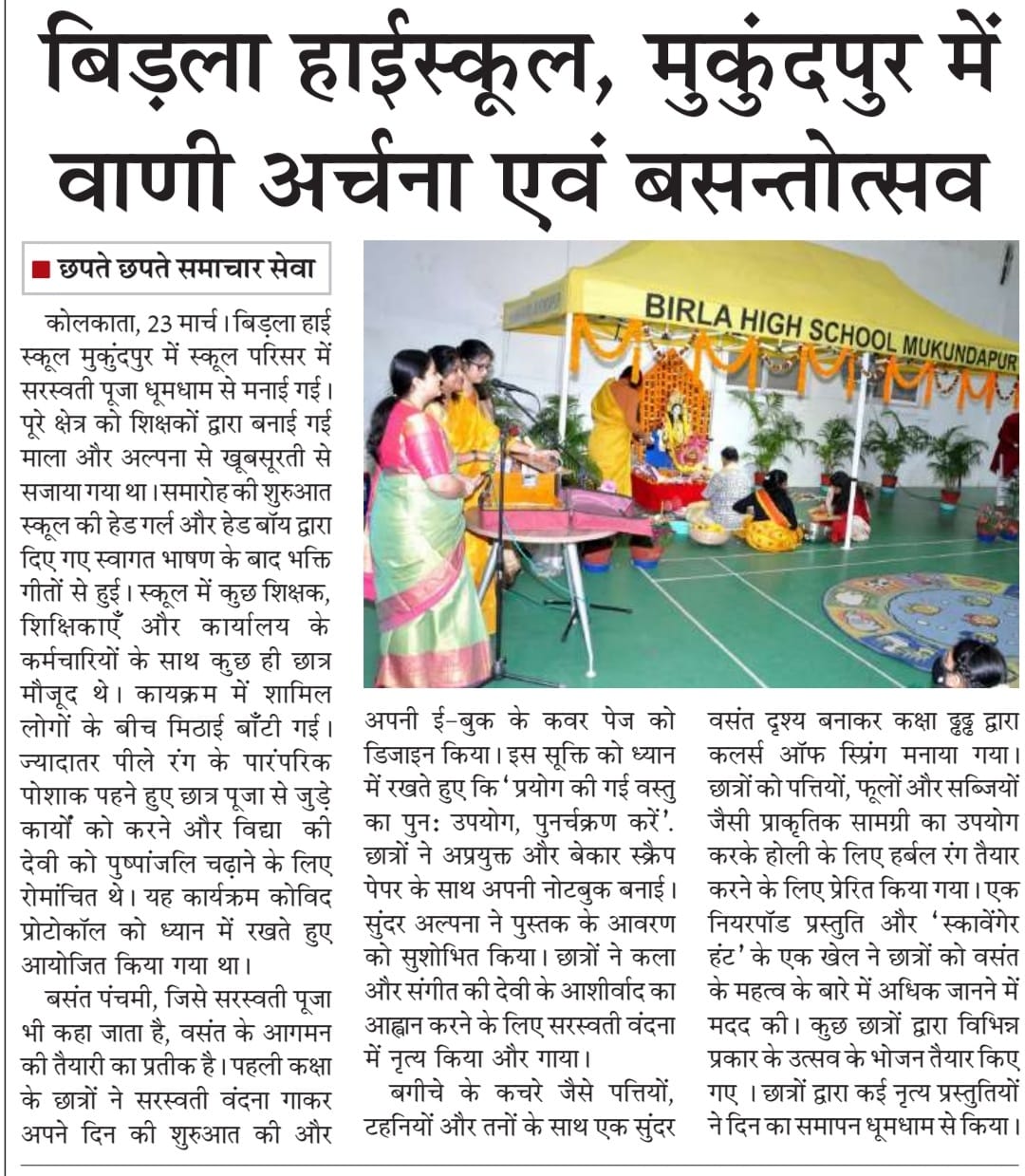 Birla High School - Mukundapur celebrated Vasant Utsav