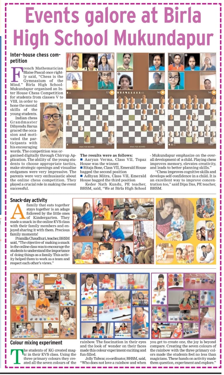 Birla High School - Mukundapur organises Inter House Chess Competition, Snack Day Activity & Colour Mixing Experiments
