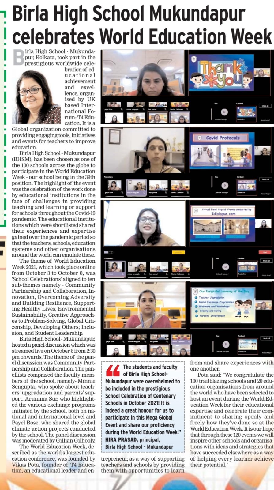 Birla High School - Mukundapur participates in T4 World Edu Week