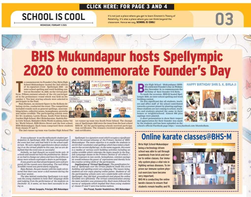 SPELLYMPIC 2020, Founder's Day and Online Karate Class of Birla High School - Mukundapur