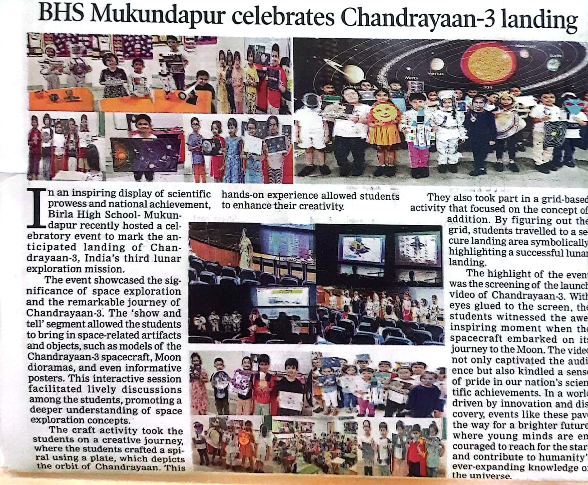 Read MoreBirla High School - Mukundapur marked the significance of space exploration Chandrayan - 3