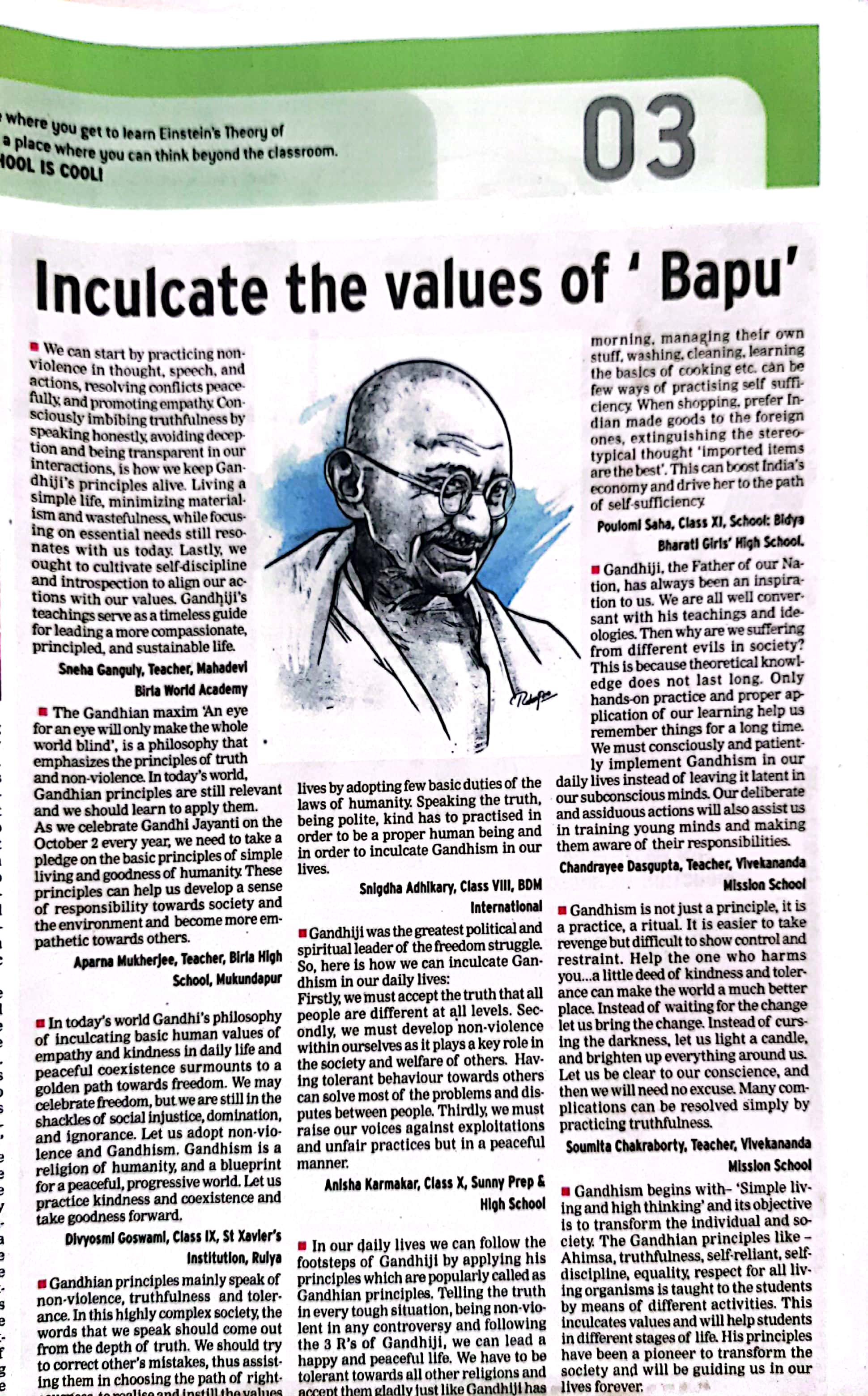 Mrs Aparna Mukherjee, one of the Teachers from Birla High School - Mukundapur has shared her view on Gandhism