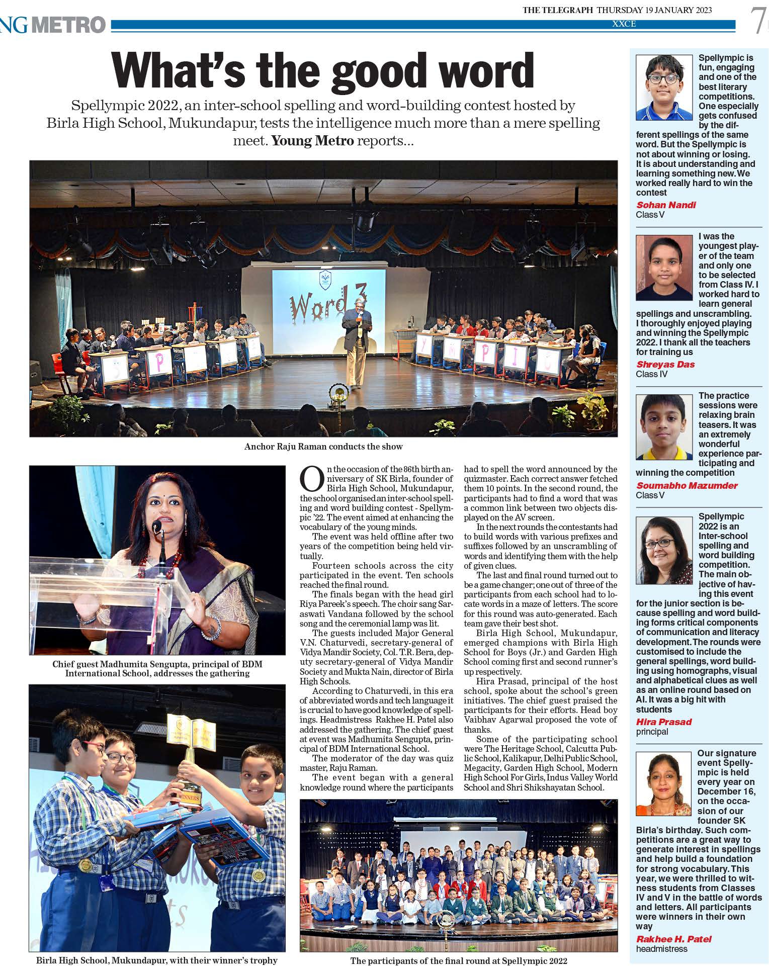 Read MoreBirla High School - Mukundapur holds Junior School fest - Spellympic 2022 in the campus